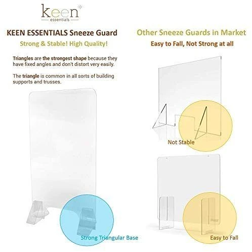 Each screen comes with (2) triangular base to support the protection screen firmly in place. Non-skid silicone tabs supplied for the triangular base for better grip. Plexiglass/Acrylic panels have precision cut slots to lock into support base. The ultimate barrier screen with best built in features.
