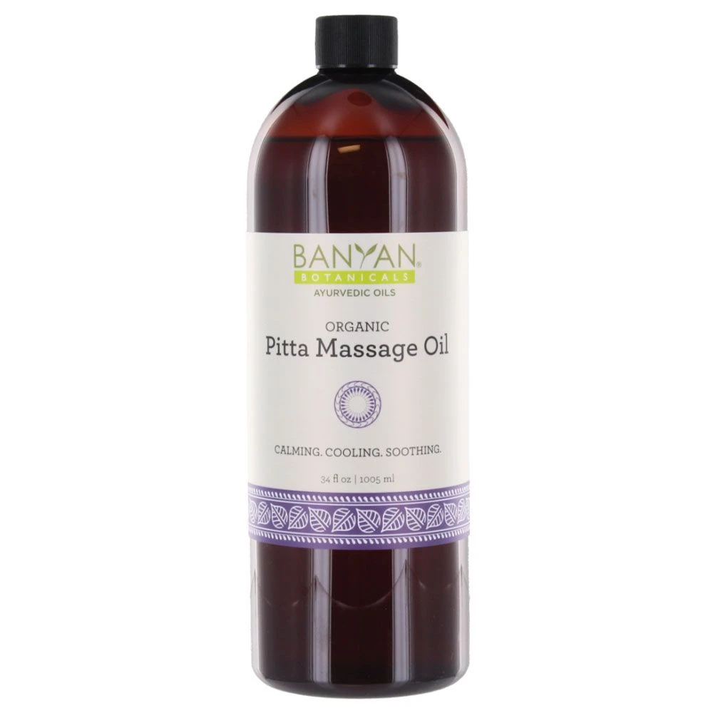 This aromatic oil is a cooling blend of nine organic herbs, including brahmi/gotu kola, guduchi and manjistha, in a base of sesame and sunflower oils. These herbs are traditionally used in Ayurveda to address pitta by removing excess heat while relaxing the tension associated with pitta. A daily self-massage benefits the skin, where pitta tends to accumulate, supports healthy circulation and helps move toxins out of the system. Experience the soothing benefits of Pitta Massage Oil. Transformation in the body always requires pitta: digestion, metabolism, temperature maintenance, sensory perception, and comprehension. Pitta tends to be driven and ambitious and benefits from the break provided by a soothing massage, which is enhanced by the cooling and cleansing qualities of the herbs found in Pitta Massage Oil. Pitta also holds tension in the muscles and is relaxed by the therapeutic touch of a warm oil massage. Certified Organic.