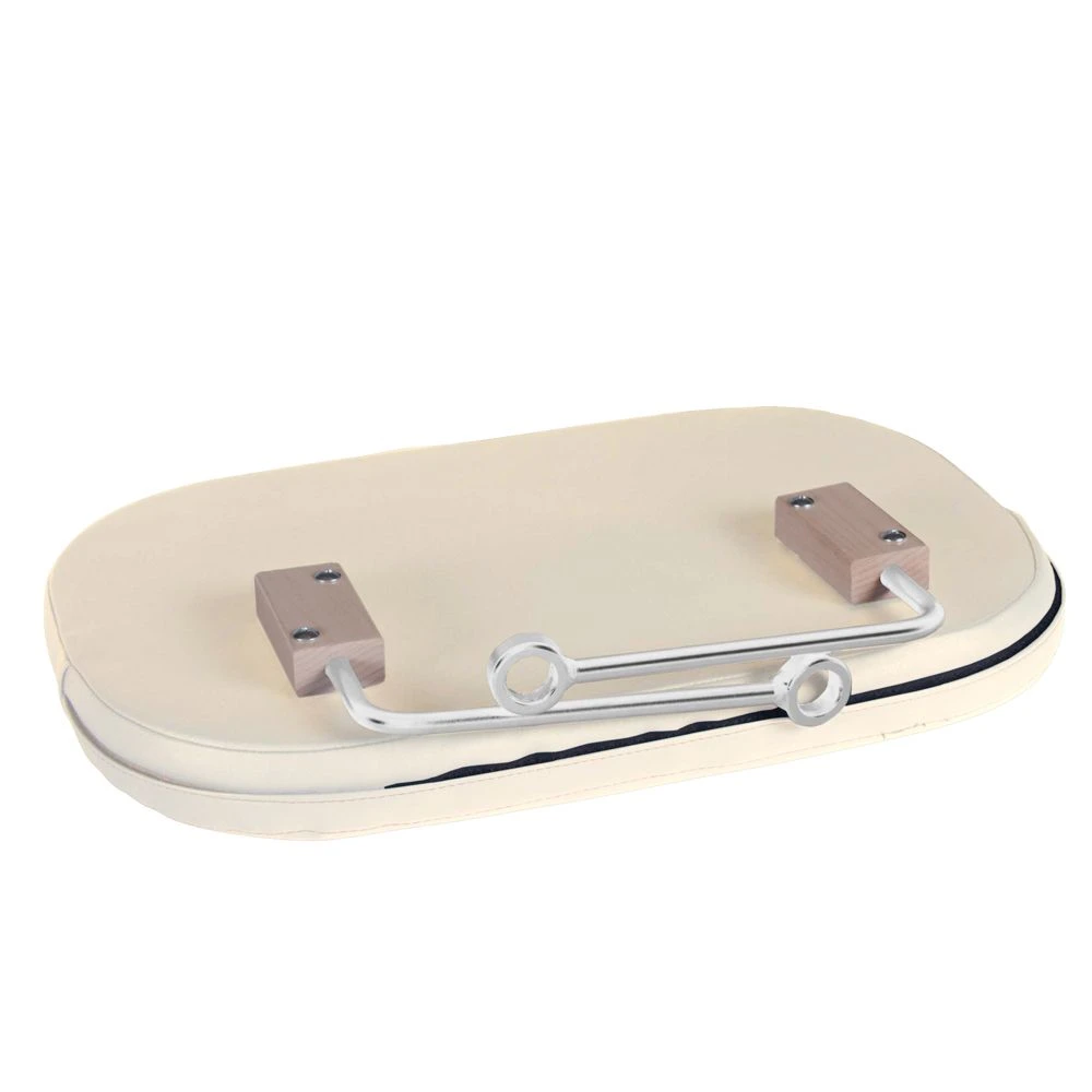 The Arm Shelf (shown below the face rest in photo) allows clients to rest their arms comfortably while in the prone position, and is great for opening the shoulders for deeper access. Fits face rest platforms with dowels that measure 8” apart center to center.
