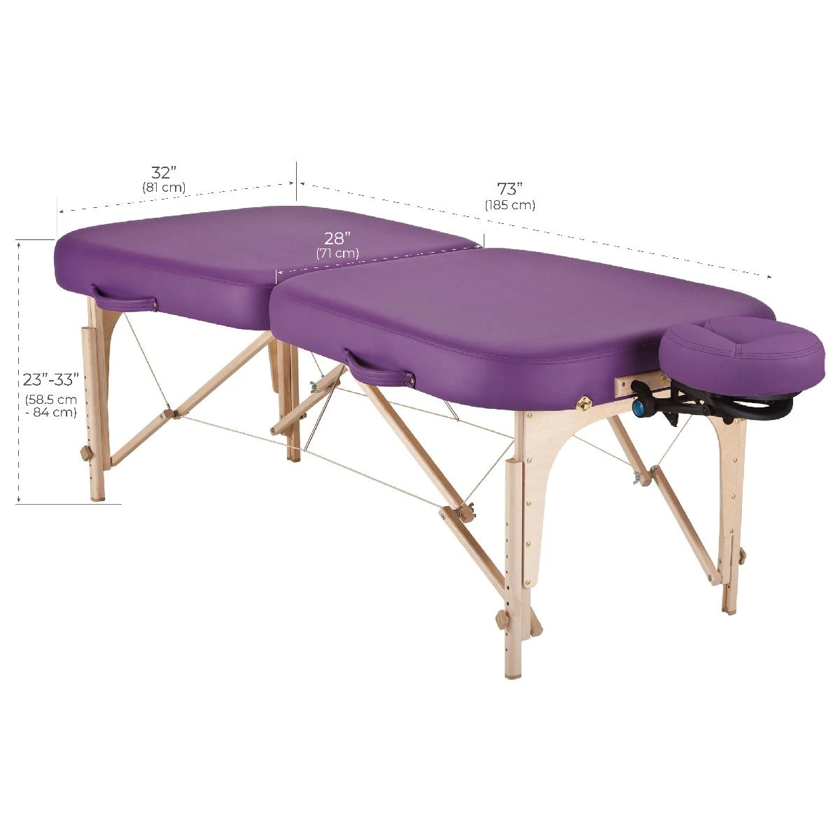 Designed to be wide where a table should be wide (32” in the shoulder area) and narrow where a table should be narrow (28” in the middle), the Infinity gives ultimate client access without sacrificing comfort or durability. The revolutionary Infinity hoop construction utilizes a shaped 10-layer laminated frame, creating sweeping rounded corners to soften both the table’s look and the impact on the therapist. Available as table only, or in a value package.