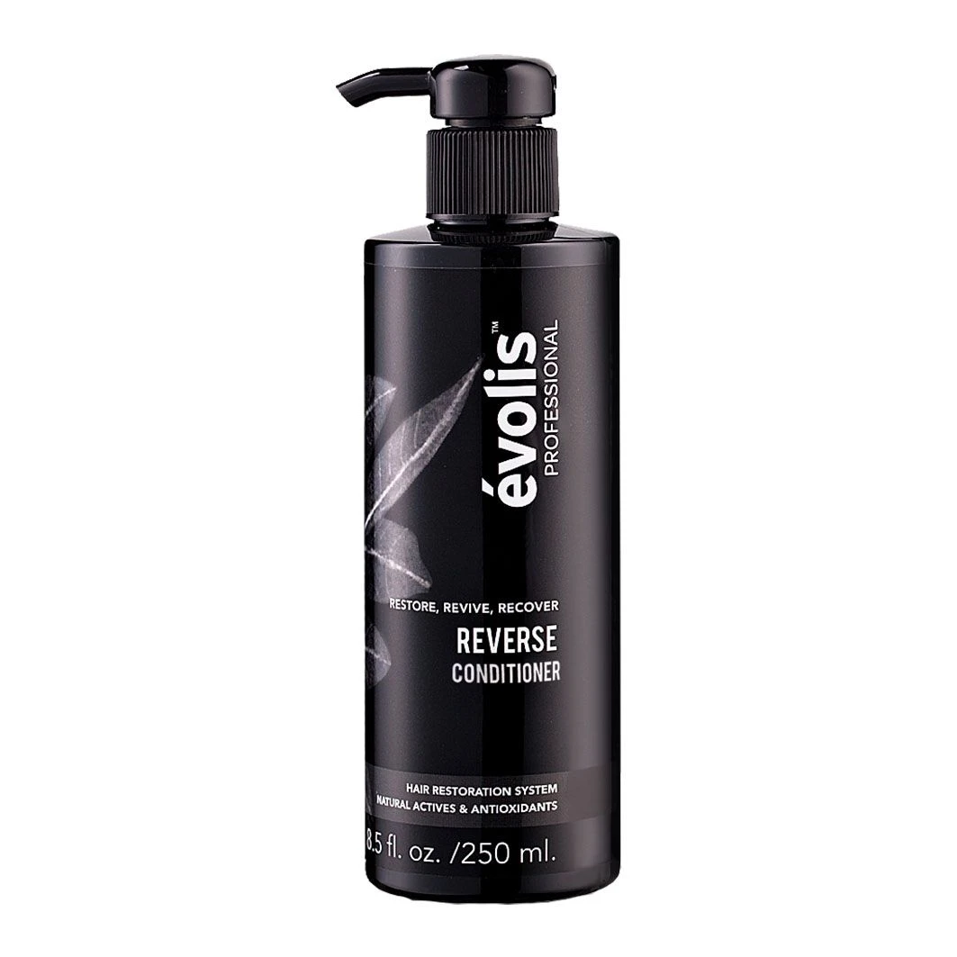 évolis™ Professional REVERSE Conditioner is the perfect solution to condition, increase thickness and add shine with its lightweight formula. Strengthening keratin and wheat protein fortify the hair structure to volumize and protect mid-lengths and ends. Hair becomes thicker, fuller, stronger and shinier. 8.5 oz.