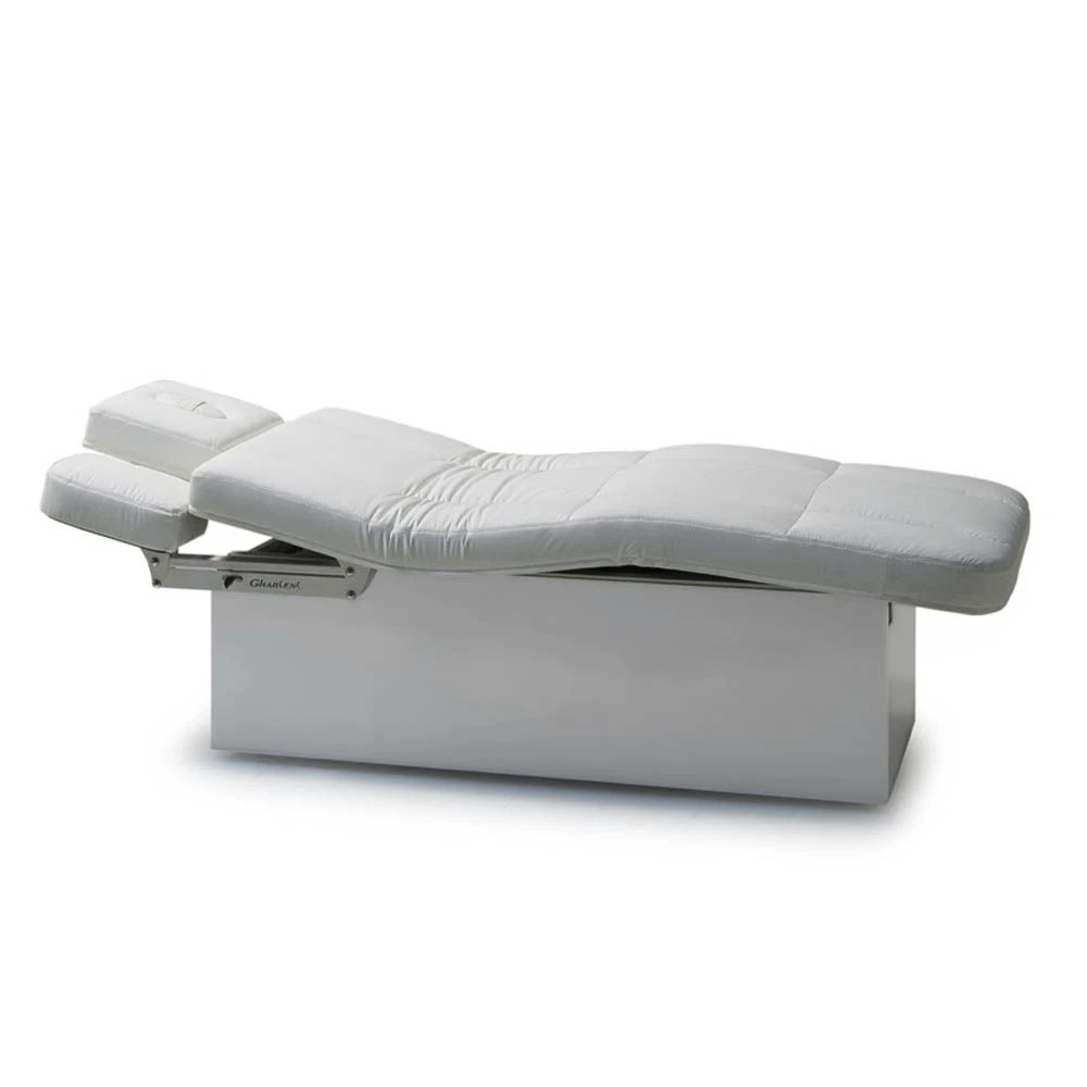 The MO1 Evo astounds with an extremely low accessibility of under 50 cm (19.7 in). Adjustable and swiveling armrests are valued for their extreme comfort. The storage space in the base is flexible and configurable and can accomodate Hot / cool cabis either at the head and / or feet ends. It is available in many different decors and fully customizable to any décor.