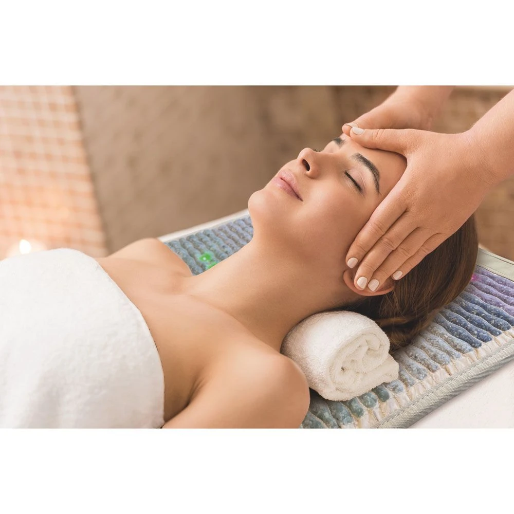 The Rainbow Chakra Mat is uniquely designed unlike any other model to enrich and enhance spiritual energy through the use of natural therapies and facilitates essential processes needed to achieve spiritual enlightenment. The surface of the mat consists of pounds of 7 different natural gemstones. These gemstones become a heated surface to lie on that works to release tension all throughout your body. This maximizes your comfort and focus. Complete relaxation is vital to establishing a connection with your spiritual energy. Additionally, the heat of the Rainbow Chakra Mat will assist with detoxification and cleansing of the body through excessive sweating.