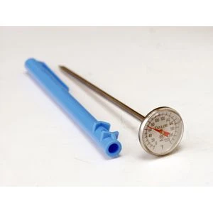 This Hot Stone Massage Warmer Thermometer has a 1″ dial with 5″ slim stem, a plastic pocket case, shock-proof protection, stainless steel parts, and unbreakable polycarbonate crystal. It has a Safe-T-Set⢠external recalibration design with a 1 point calibration for 1% at dial midpoint. The temperature range is 0° to 220°F with 2-degree divisions. While this Hot Stone Massage Warmer Thermometer resembles some in grocery stores, this model is much more accurate.