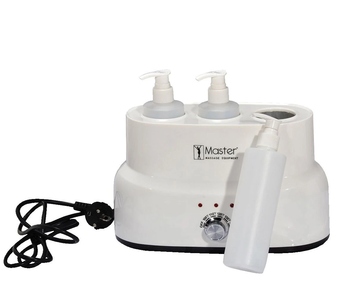 The best choice for Massage Therapists! Master® Massage innovative top quality 3-bottle warmer makes your client comfortable and happier by warming your favorite oil, lotion, cream, or gel. It heats up quickly, safely and evenly, helping to keep the temperature consistent without compromising the oil’s nutrients. Warmer will gently warm 3 standard 8 oz. bottles to a perfect 60°C/140°F degrees and has an auto-shut off to regulate the temperature. Features five adjustable temperature levels and will automatically stop heating when it reaches to its desired temperature and will resume heating once the temperature has fallen below the desired number of degrees, so there is no risk of under heating or overheating your oil. Bottle warmer is durable and easy to clean, protected by Master Massage’s 1-Year Guarantee against manufacturer’s defects in materials and craftsmanship. A must have for any spa industry professional.