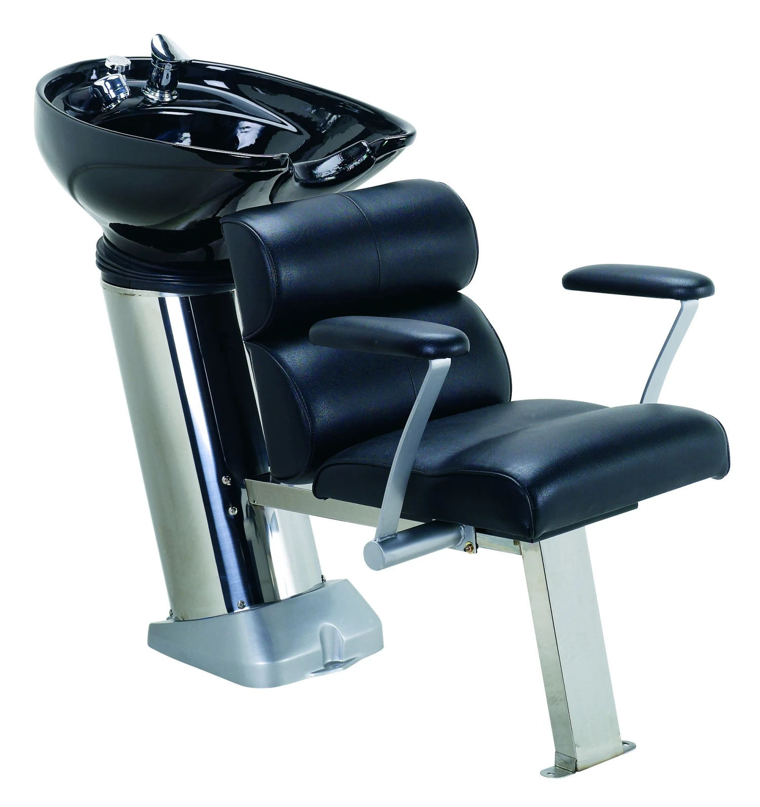 The Paragon® Backwash System is complete with tilt-adjust porcelain bowl, XB802 faucet fixture, atmospheric vacuum breaker, neck cushion, and stainless steel base with removable back panel. Back cushion automatically pivots to lift and support the client’s lower back. Seat cushions slide forward to redistribute seated weight. Plumbs to floor or wall.