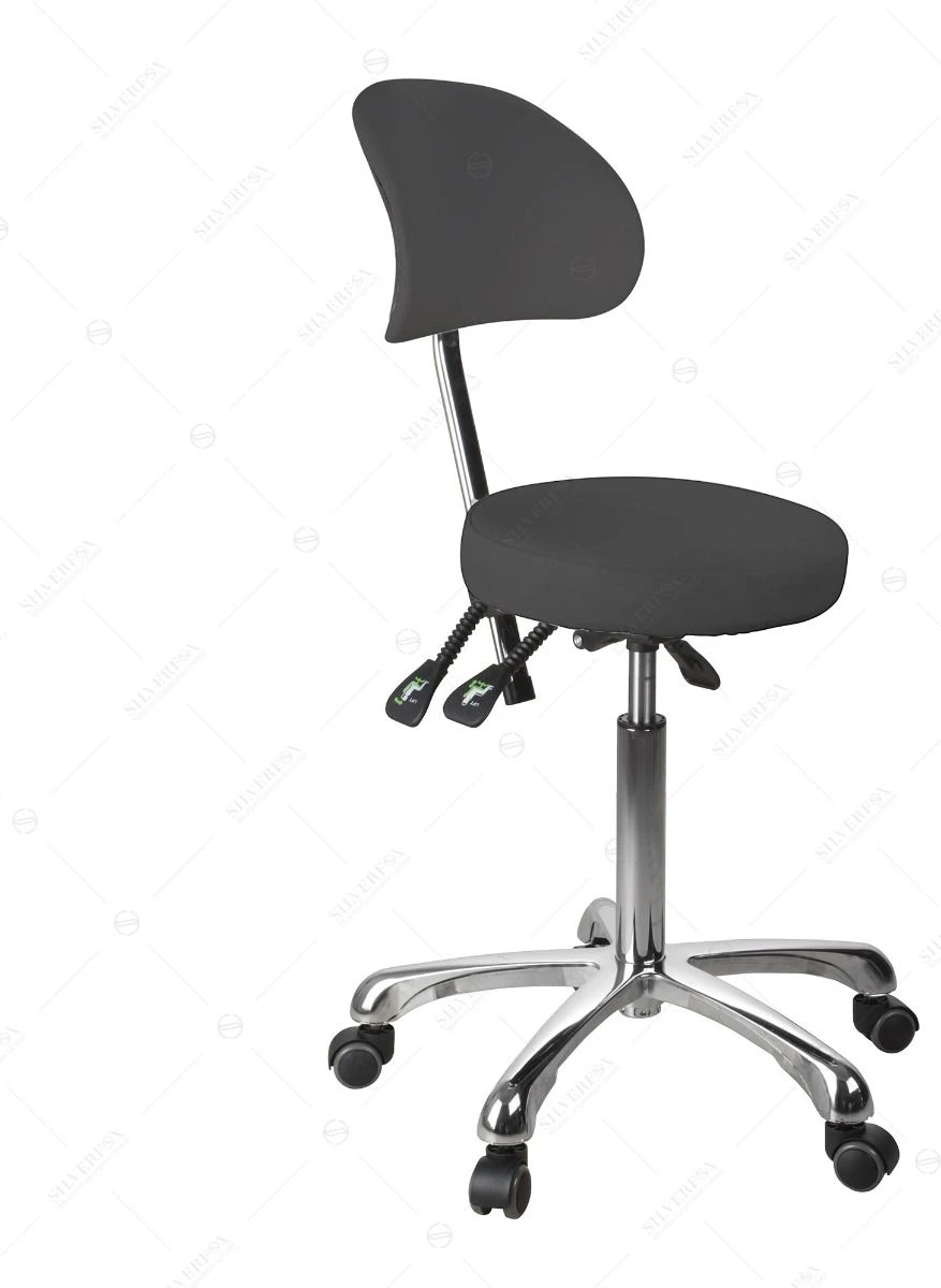 - Equipped with 3 gas lift levers to adjust height, backrest, and tilt