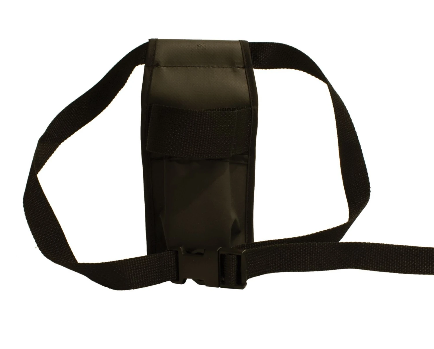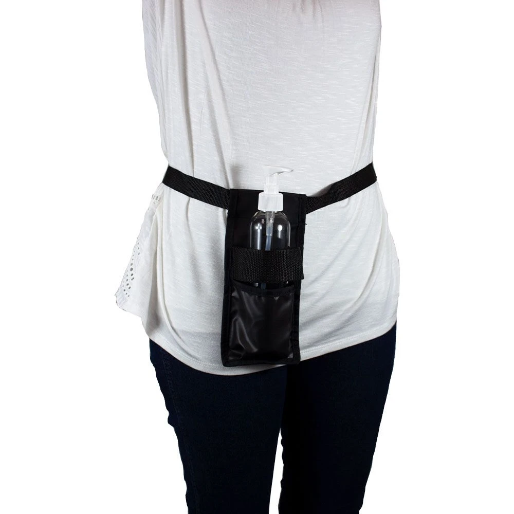 This convenient holster keeps lubricants handy during massage. Ideally suited for 8 oz bottles and 4 oz jars. Stain resistant nylon does not absorb massage lubricants keeping your holster looking newer, longer. Holster can be machine washed in warm water with mild detergent. For best results, allow to air dry. Bottle sold separately. Black.